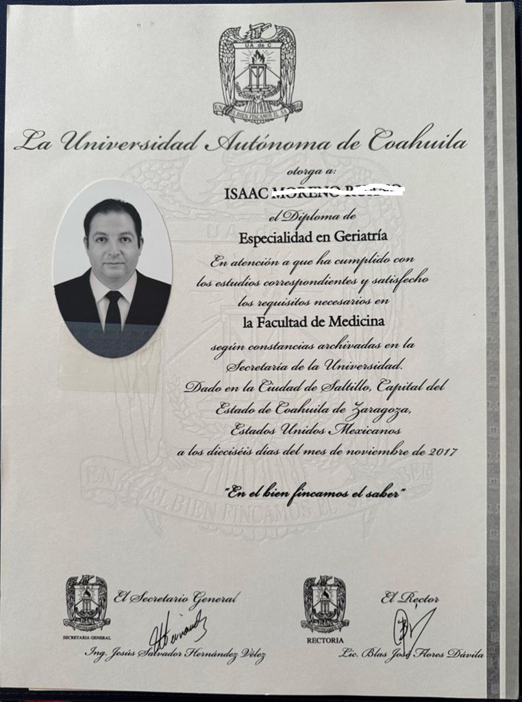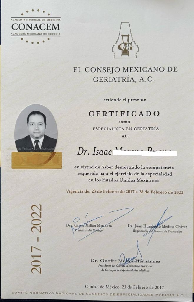Especialista en geriatría trabajo de la manera mas honesta posible para darle la mejor atención