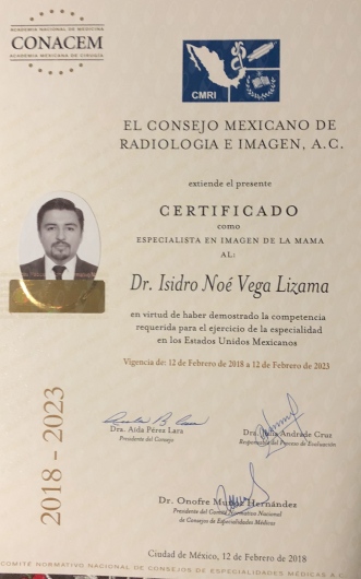 Mi especialidad incluye el diagnóstico avanzado por ultrasonido, para estudios de todo el cuerpo. Cuento con una alta especialidad en radiología e intervencionismo mamario, con certificación vigente, por lo que mi área de meyor enfoque es en diagnóstico de enfermedades mamarias y de cáncer de mama.