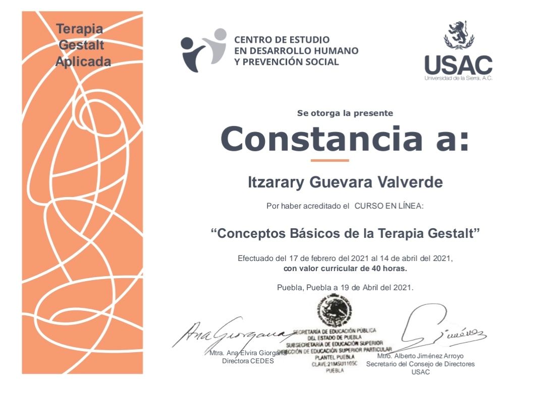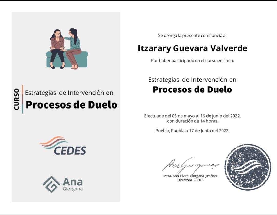 15 opinionesHola, soy Itzarary Guevara Valverde, psicóloga egresada del Instituto Politécnico Nacional (IPN), actualmente curso la Maestría en Psicología Clínica con enfoque Cognitivo Conductual en la Universidad Justo Sierra.