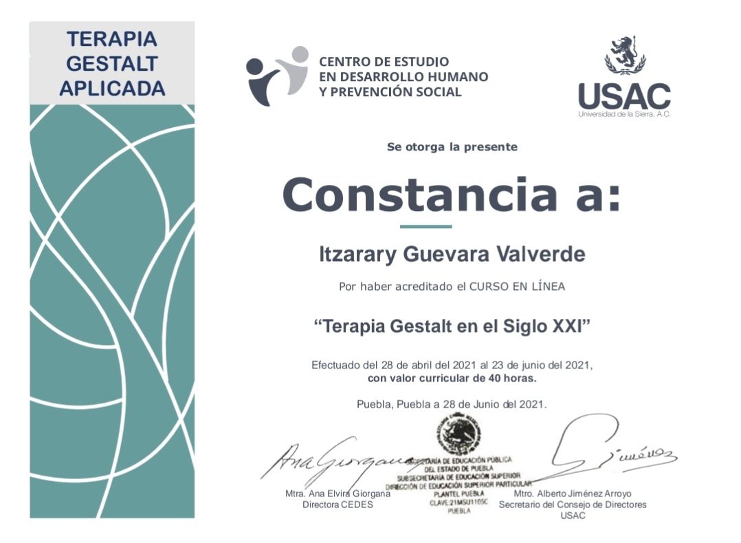 A lo largo de mi formación he complementado este enfoque con diplomados en Terapia Gestalt, Terapia Narrativa, Terapia de Sesión Única, Perspectiva Feminista en Psicoterapia, Estrategias de Intervención en Terapia Familiar y Tanatología, lo que me permite adaptar cada proceso a lo que tú necesitas.