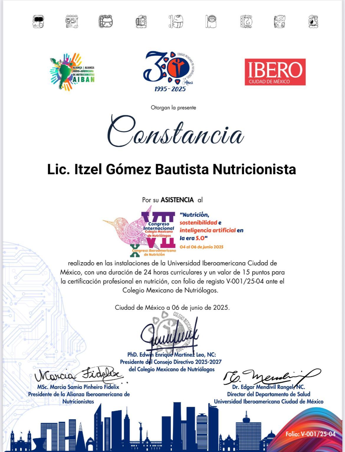 Soy Itzel Gómez Bautista, Licenciada en Nutrición Funcional. Mi pasión es ayudar a mis pacientes a transformar sus hábitos de manera sencilla y práctica, para que puedan adoptar un estilo de vida saludable y sostenible. Trabajo para que cada función del cuerpo opere correctamente, mejorando la movilidad, energía y calidad de vida, promoviendo bienestar físico, mental y emocional.