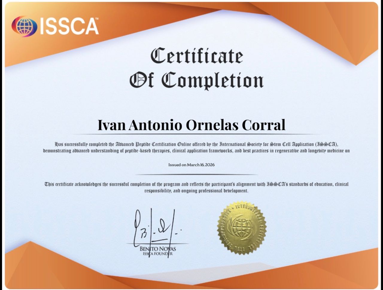 Egresado de la Universidad Autónoma de Ciudad Juárez (UACJ) como médico cirujano con cédula profesional 10777860. Especializado en medicina funcional, regenerativa, estética, nutrición y antienvejecimiento, con múltiples certificaciones por The American Academy of Anti-Aging Medicine (A4M), Institute of Functional Medicine entre otras organizaciones internaciones y formación en el extranjero.