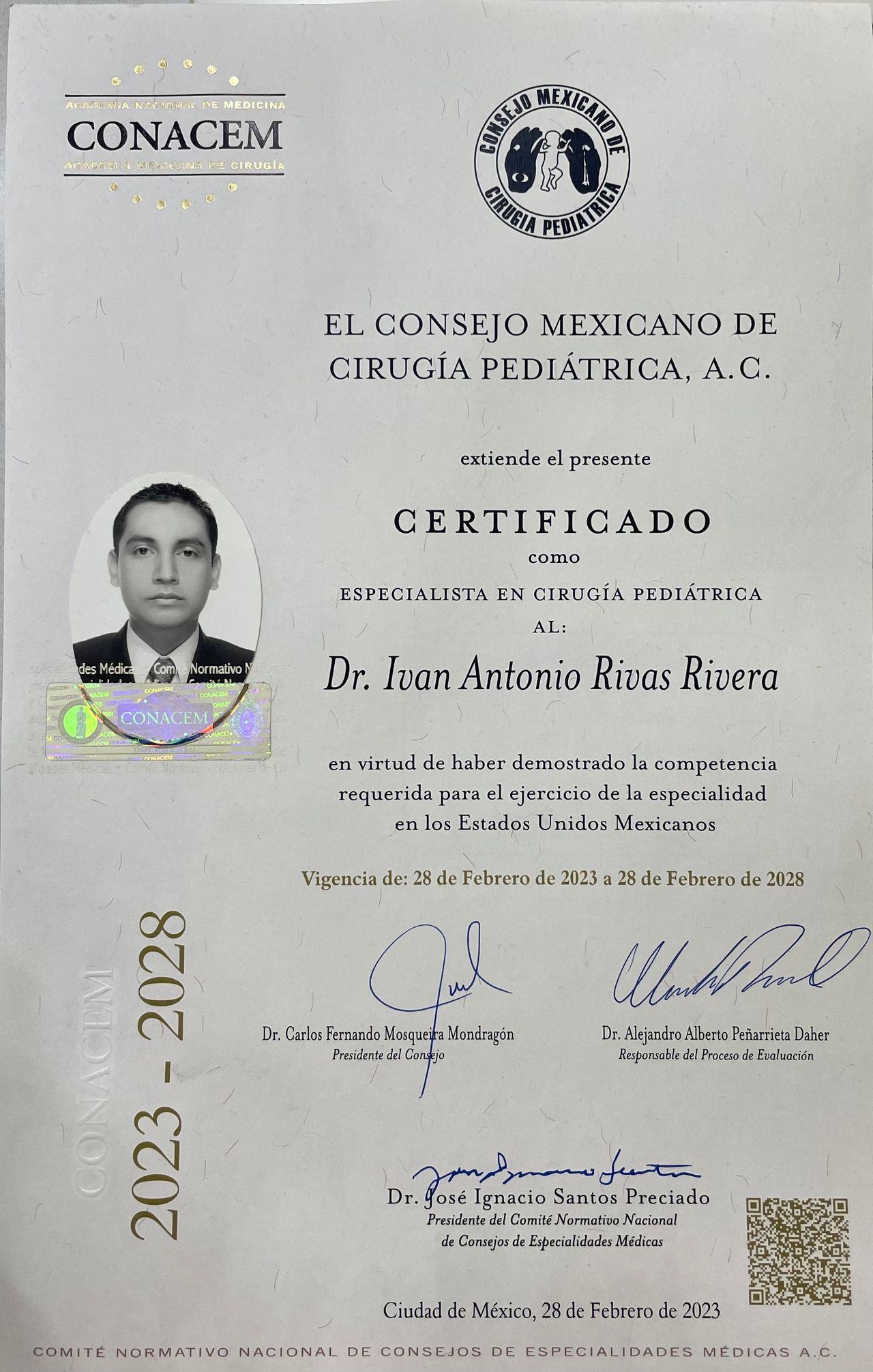 ¡Hola! Soy el Dr. Ivan Rivas, Cirujano Pediatra Endoscopista egresado del Hospital Infantil de México Federico Gómez.
