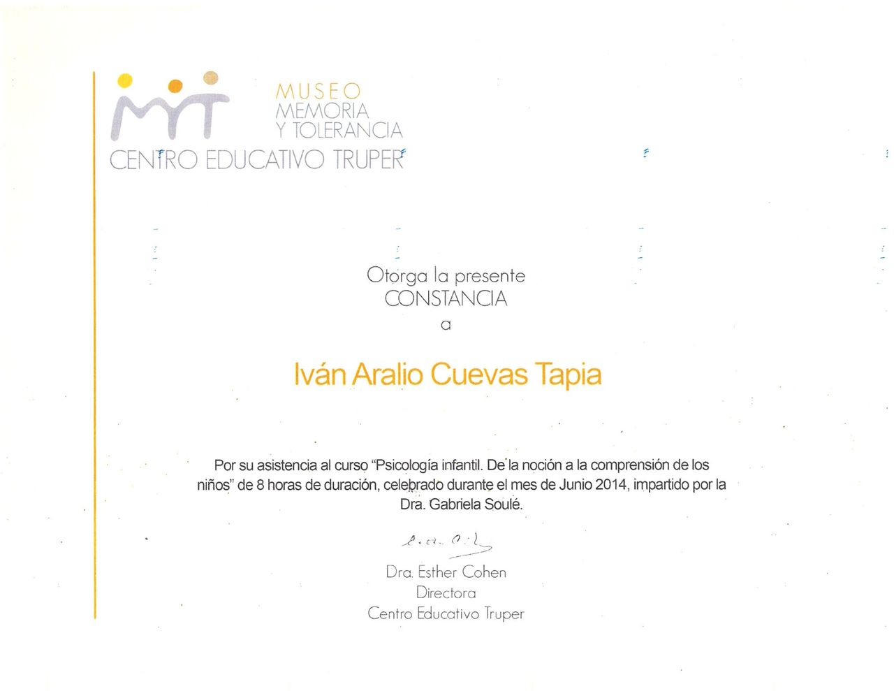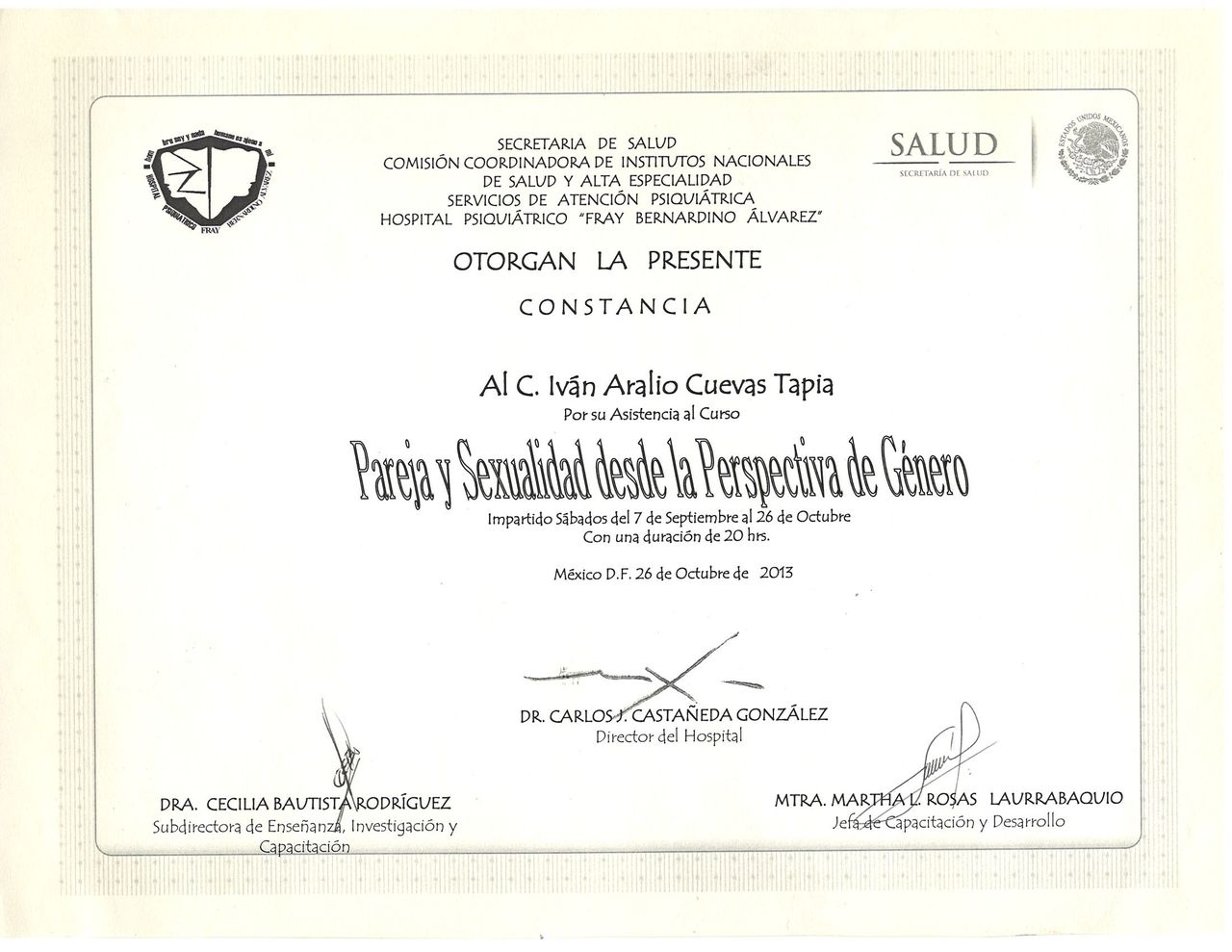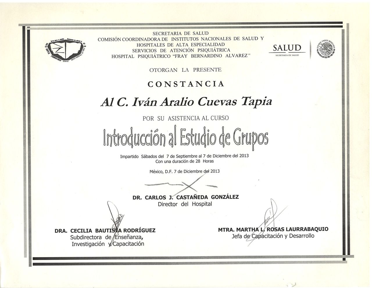 Cuento con maestría en psicología, con formación en diversos cursos impartidos por el psiquiátrico Fray Bernardino.