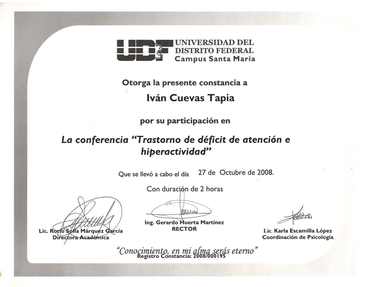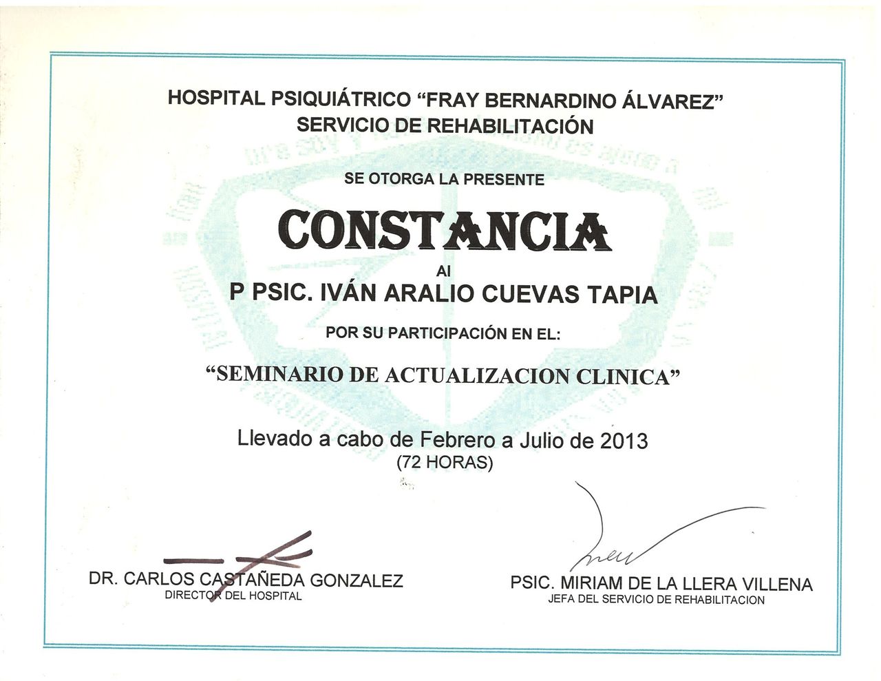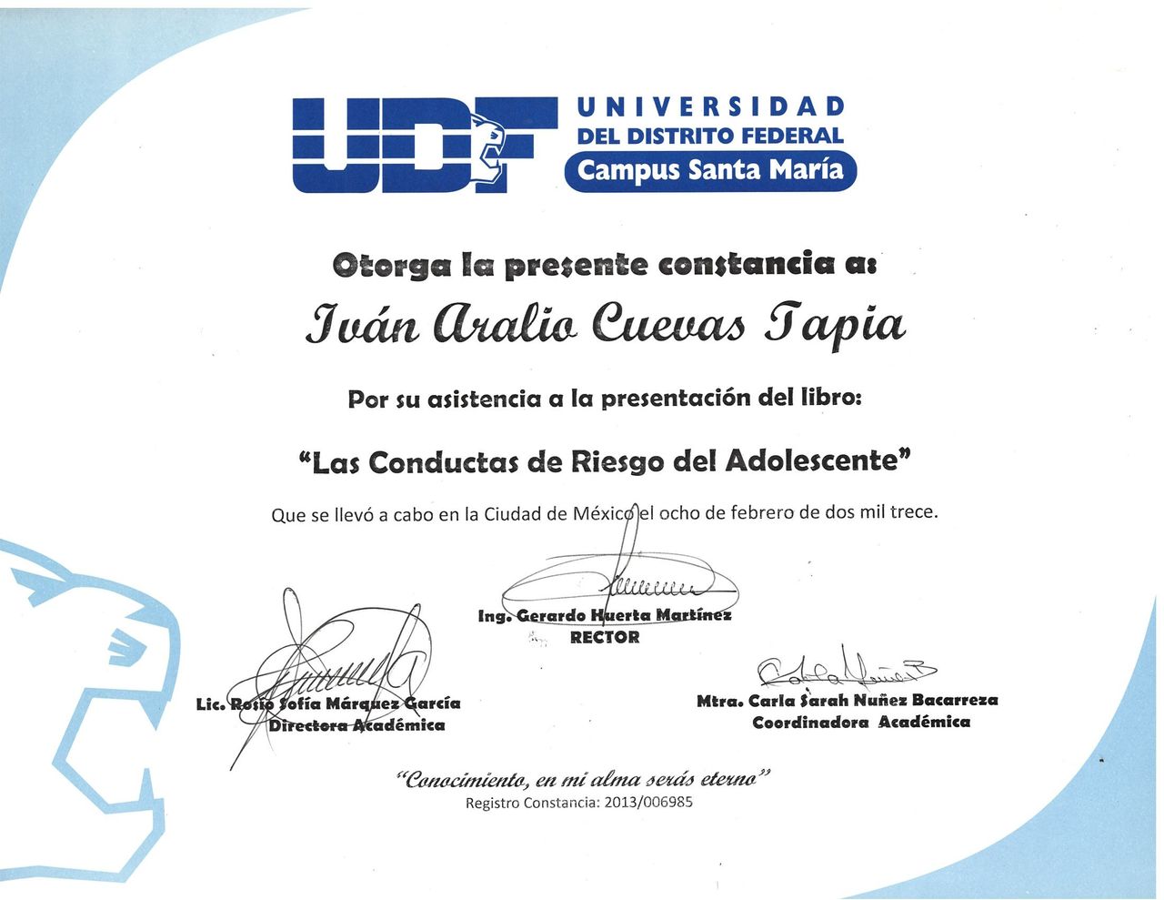 Cuento con maestría en psicología, con formación en diversos cursos impartidos por el psiquiátrico Fray Bernardino.
