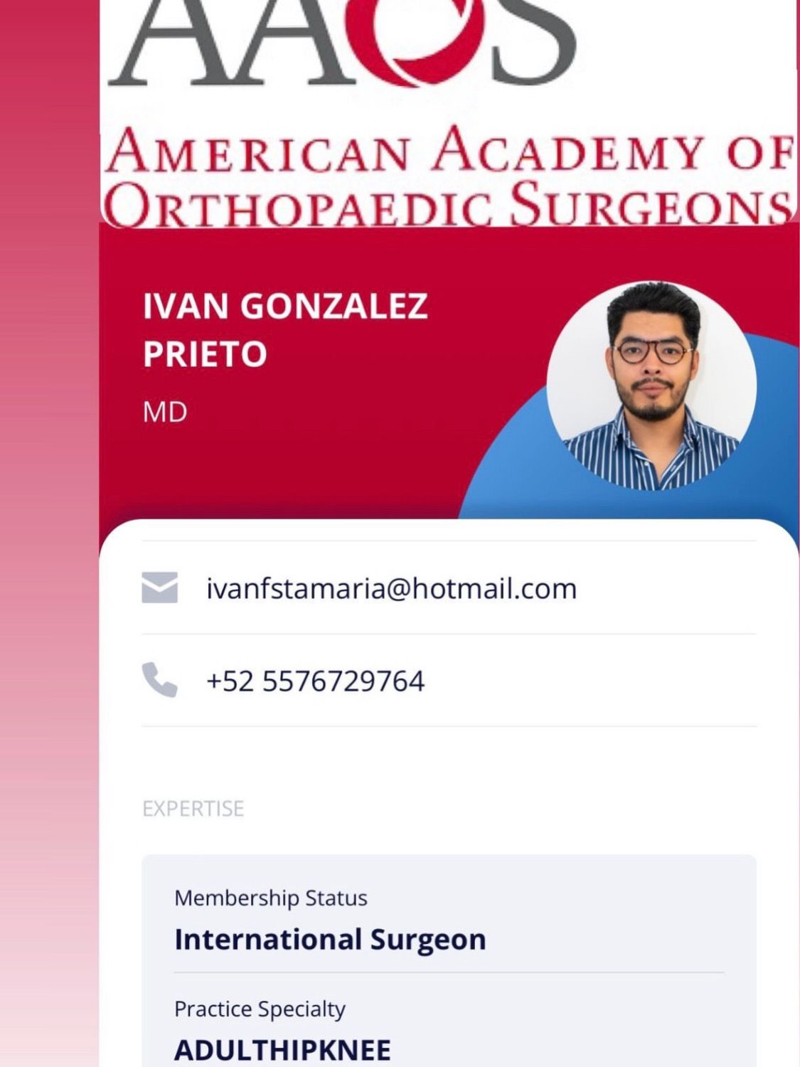 (AAOS) International Member - Orthopaedic Surgeon. Since2024- actual.