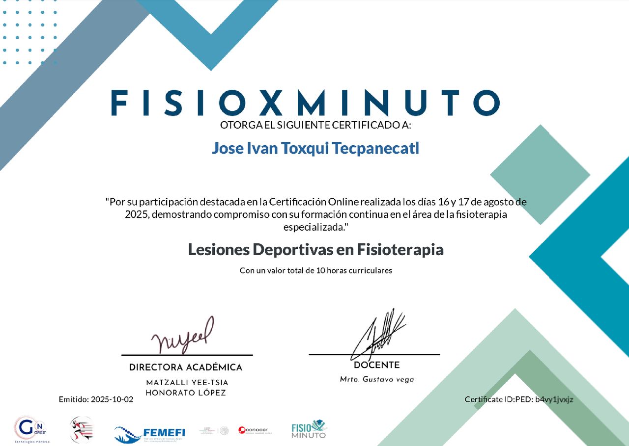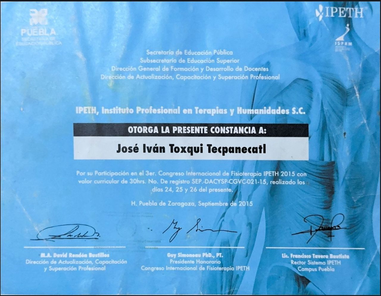 Estoy asistiendo a consulta de fisioterapia con el Licenciado Ivan, por un diagnóstico llamado síndrome de los desfiladeros, desde la 1ra consulta fue muy claro en las indicaciones, escuchó con atención los síntomas que presentaba, mismos que han ido desapareciendo poco a poco, además del acompañamiento en los ejercicios que debo ir realizando en casa. En cada una de la sesiones ha combinado diversas técnicas de las cuales siempre ha sido muy claro en el momento que las lleva a cabo, estoy muy satisfecha con los resultados, ya que poco a poco me estoy volviendo a integrar a mis actividades.