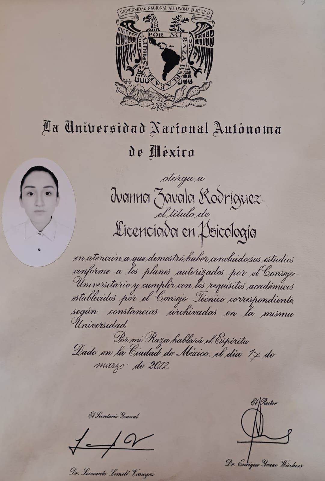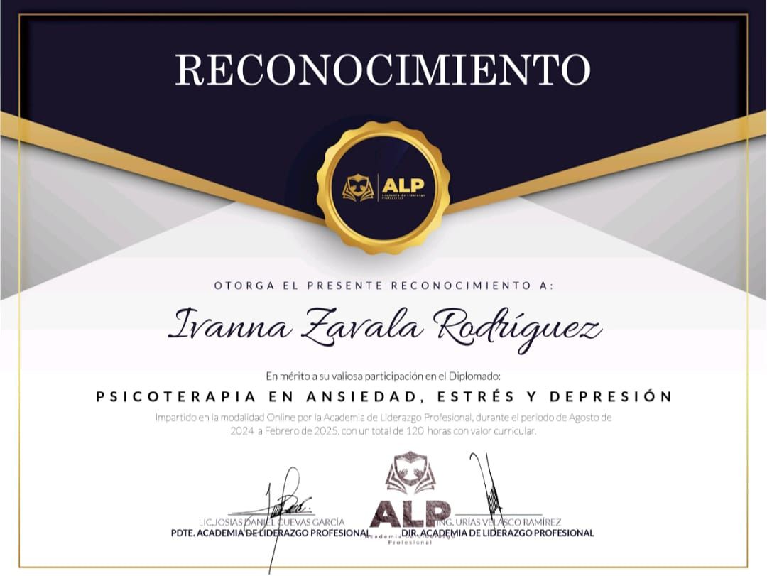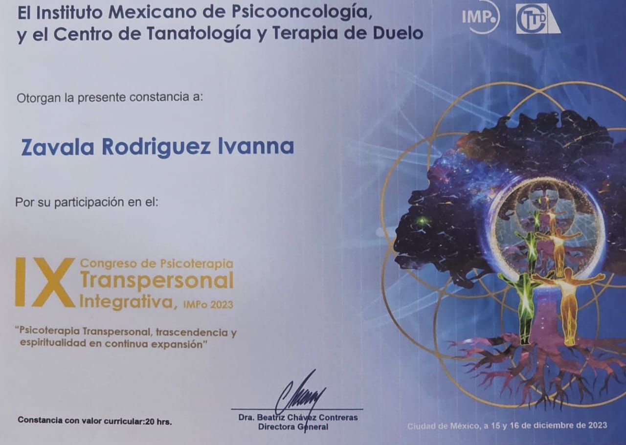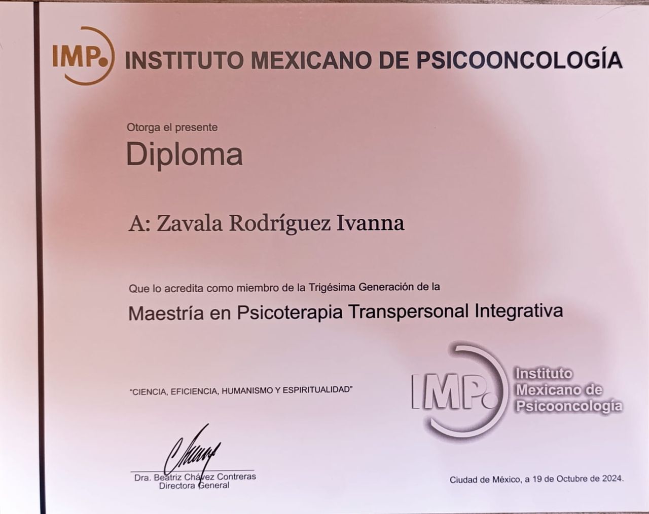 Soy Licenciada en Psicología, cuento con una maestría en Psicoterapia Transpersonal Integrativa, un Diplomado en Ansiedad, Estrés y depresión y un curso en Terapia de Pareja.