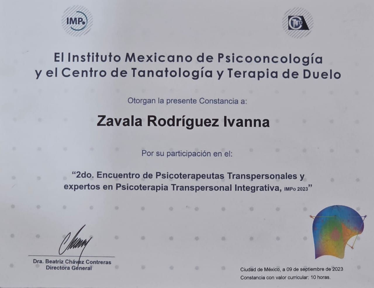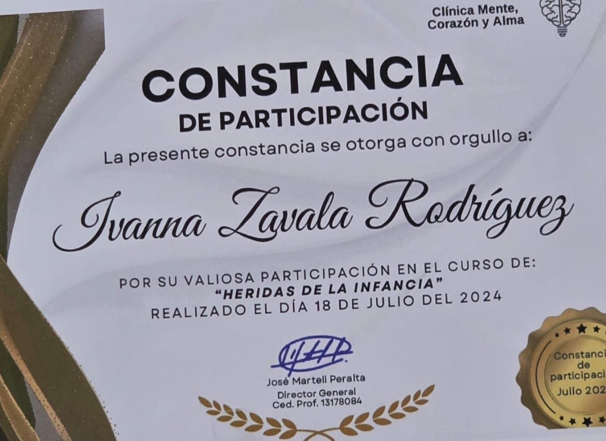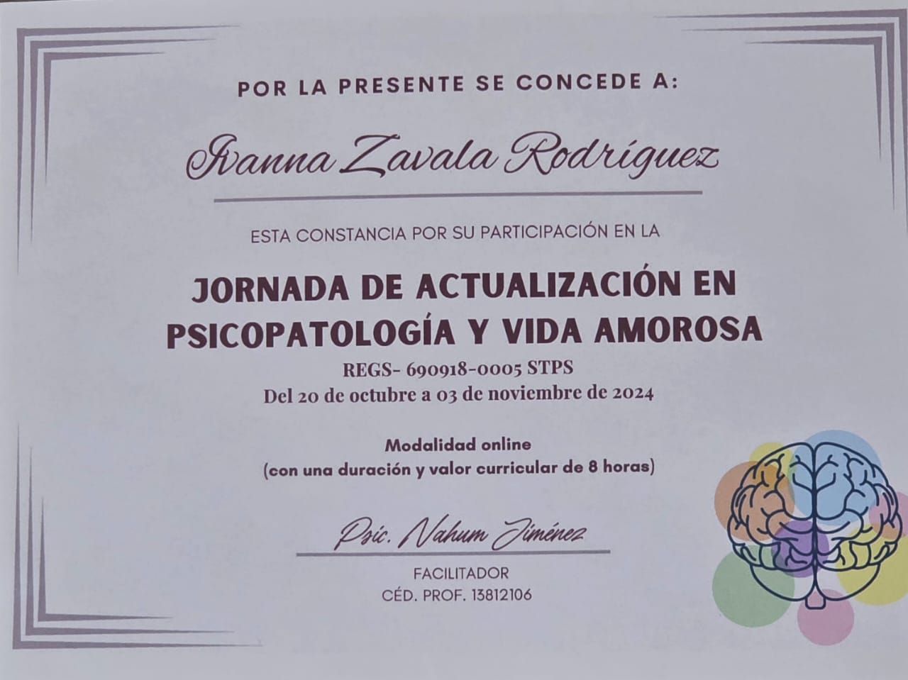 Soy Licenciada en Psicología, cuento con una maestría en Psicoterapia Transpersonal Integrativa, un Diplomado en Ansiedad, Estrés y depresión y un curso en Terapia de Pareja.