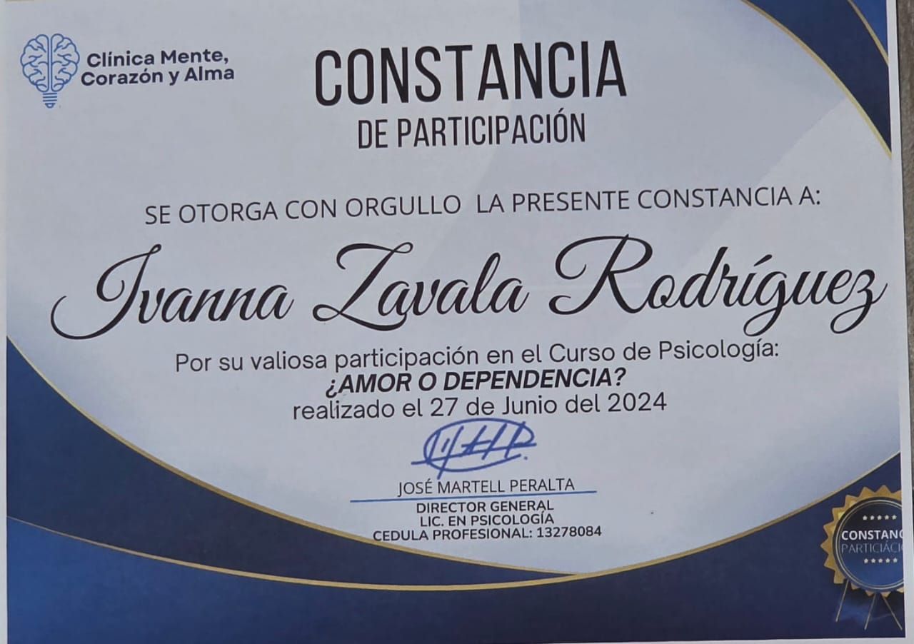 En mi opinión la terapeuta Ivanna, cuenta con una amplia preparación, y que al día de hoy con las sesiones que he tomado he podido aclarar mi situación por la cual tome la decisión de visitarla. Tiene habilidad y capacidad de escucharte con lo cual tiene un amplio panorama para poder conocer tu problema y así realizar un diagnostico más amplio y certero. En mi opinión es una terapeuta altamente recomendable.