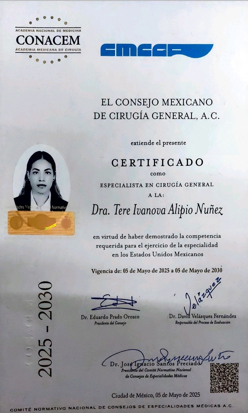 Hola, soy la Dra. Ivanova Alipio especialista en Cirugía General. Me gusta brindarle a mis pacientes la mejor atención desde la consulta de primera vez hasta la resolución de su enfermedad con la calidez y humanidad que merecen. Te responderé todas tus dudas y te acompañaré en todo tu proceso, porque no tratamos enfermedades sino enfermos.