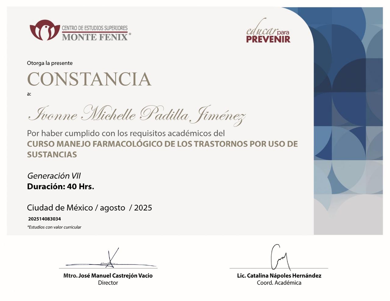 Soy médica psiquiatra egresada de Centro Médico Nacional La Raza con sede en el Hospital Psiquiátrico Morelos de la CDMX, certificada por el Consejo Mexicano de Psiquiatría con número de certificado 24803877. Con toda disposición podría ayudarte a ti o a tu familiar a tratar el problema de salud mental que les aqueja y tener una mejor calidad de vida, con un trato digno, humano y plena confidencialidad.