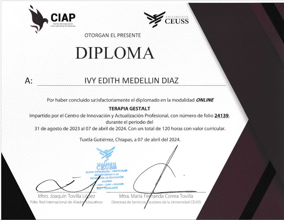 Yo era muy ajena a todo el tema de Terapias y con Ivy he logrado encontrar herramientas interesantes y muy necesarias para mi estabilidad emocional, mismas que he aprendido a aplicar. La recomiendo al 100%
