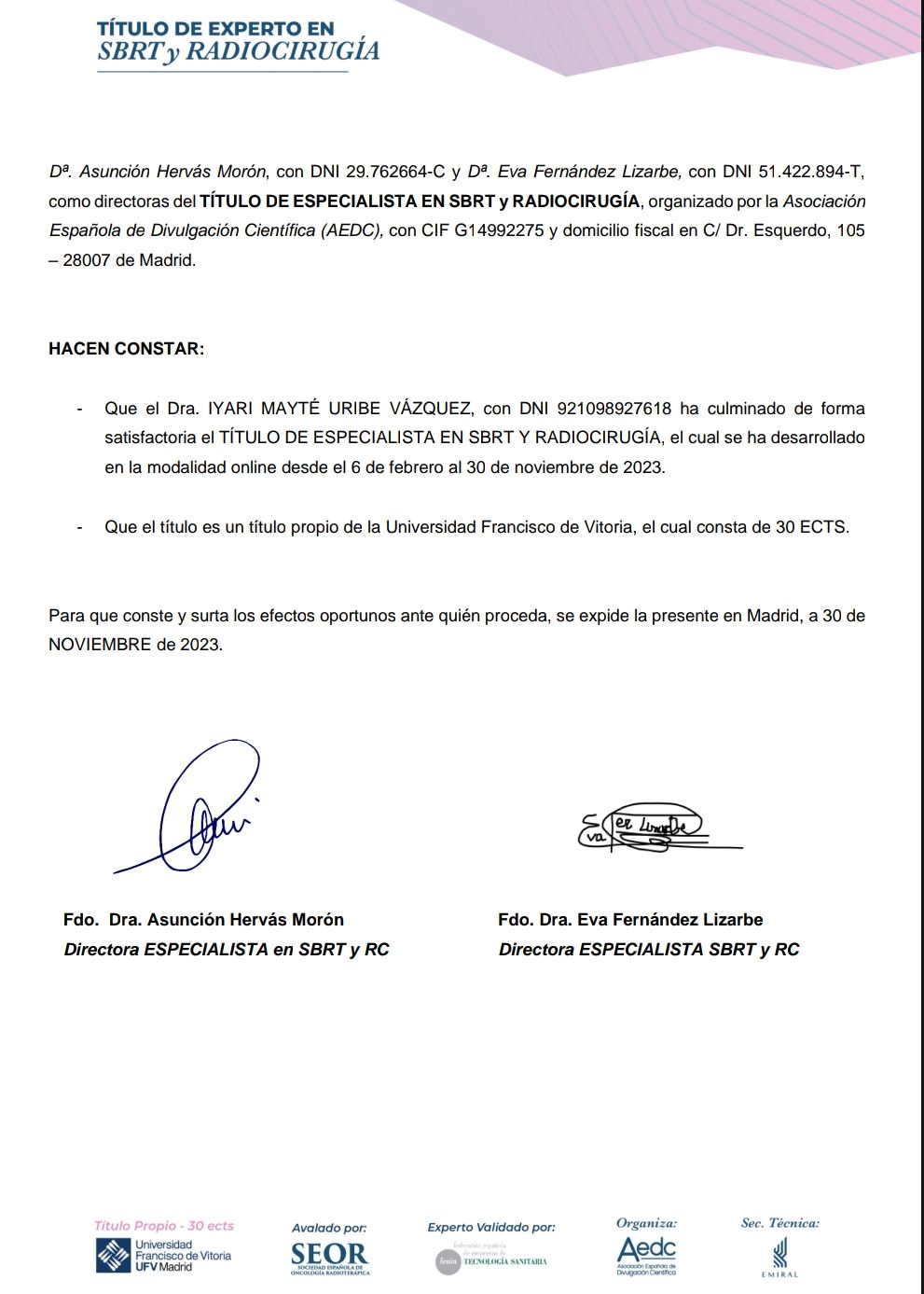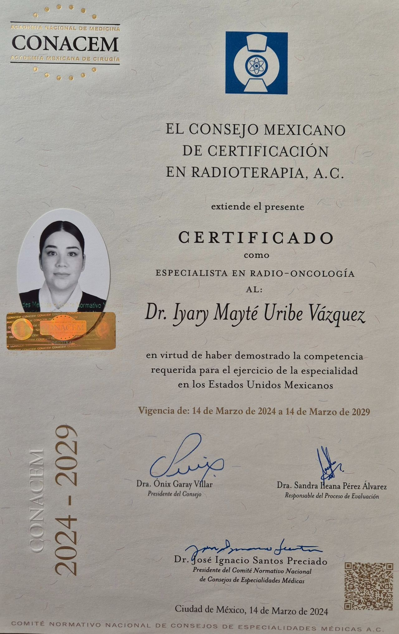 La Dra es profesional en el trato a los pacientes y en la explicación del tratamiento. Durante los días de tratamiento siempre se portó amable resolviendo cualquier duda y dando también apoyo moral a la familia. Después de meses los resultados de la radioterapia han sido satisfactorios.