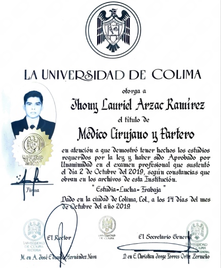 Médico Cirujano y Partero egresado de la Universidad de Colima