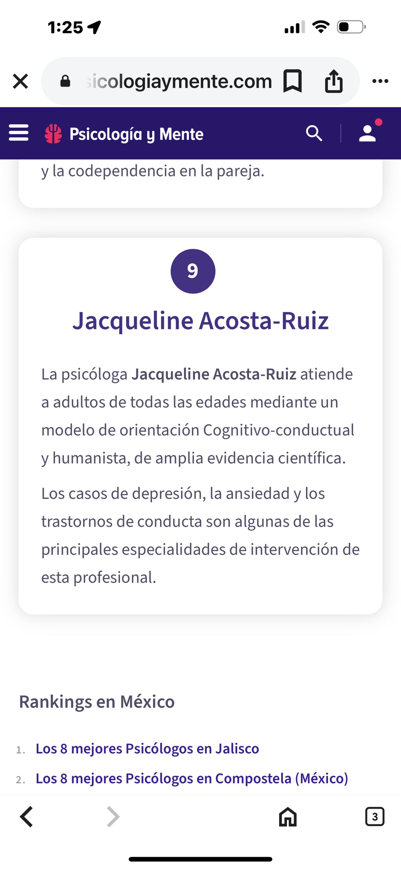 Muy recomendable.• Atención Psicológica / Jacqueline Acosta Ruiz • Primera visita Psicología •