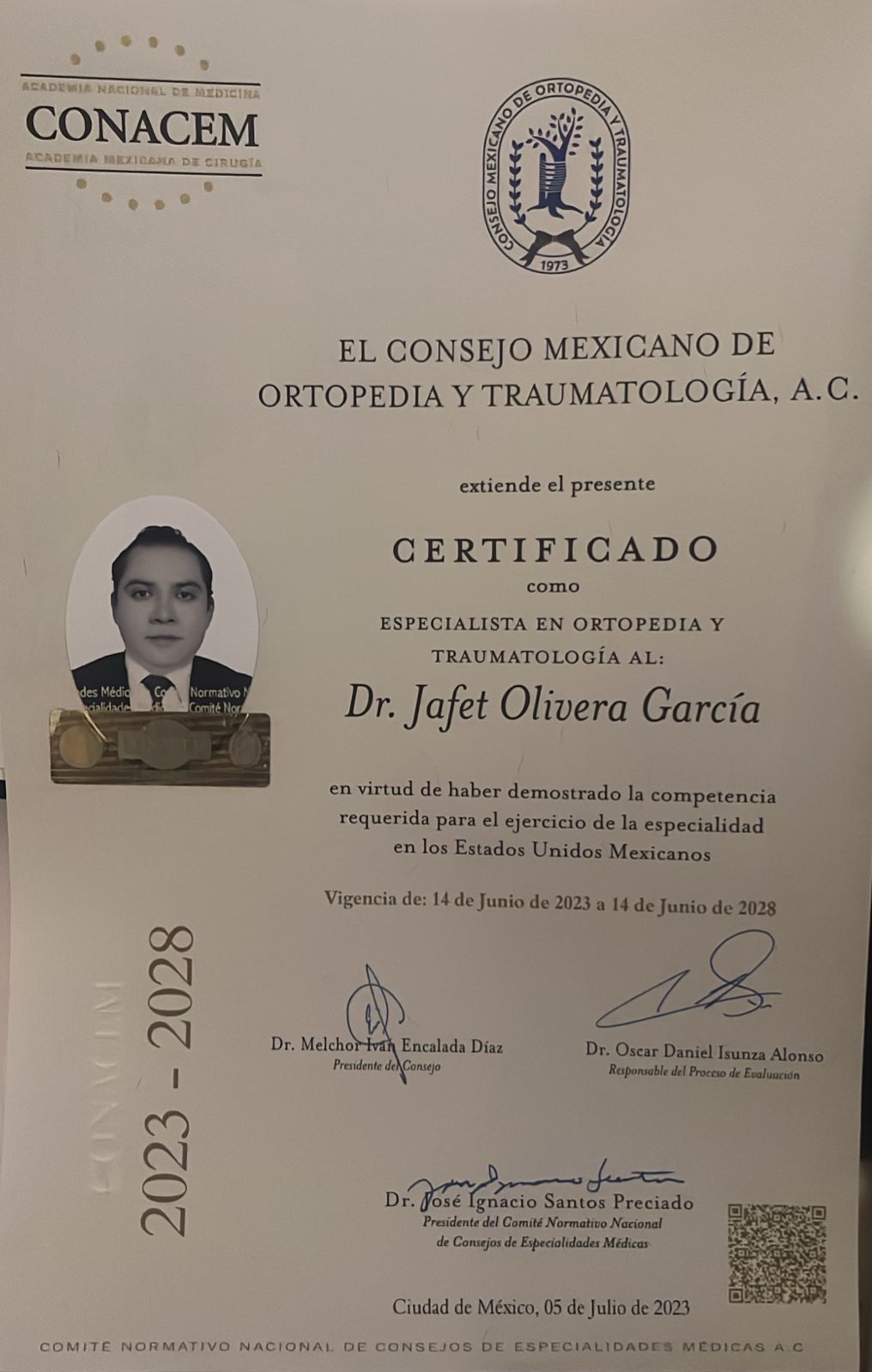 Avalado por el Concejo Mexicano de Ortopedia y Traumatología, A.C. Con el registro 21/6874/23.