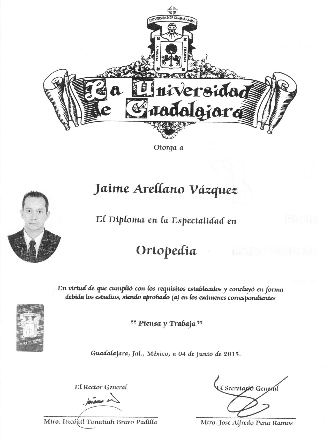 Miembro del Colegio Médico de Ortopedia de Jalisco, Colegio Médico de Ortopedia de Jalisco, A.C., 2015.