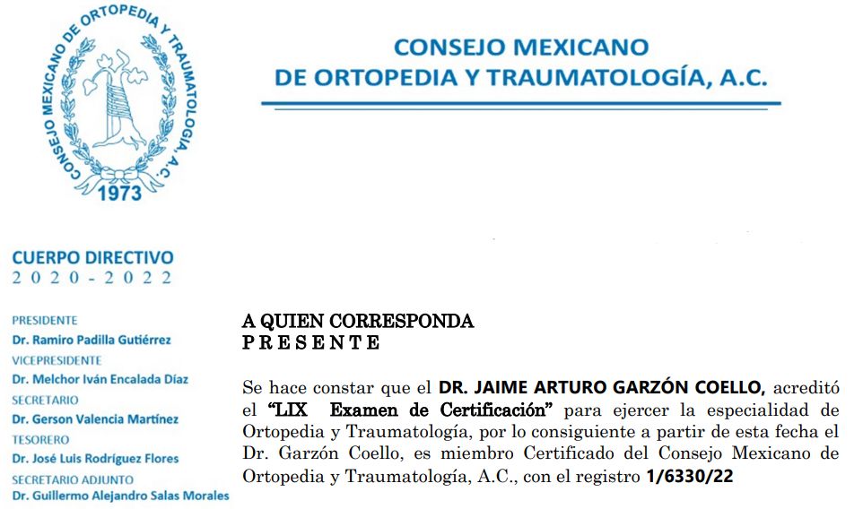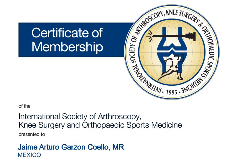 Actualmente me encuentro certificado y Miembro del Consejo Mexicano de Traumatología y Ortopedia (CMO) y miembro activo de la Sociedad Internacional de Artoscopia, cirugía de rodilla y medicina ortopédica deportiva (ISAKOS).