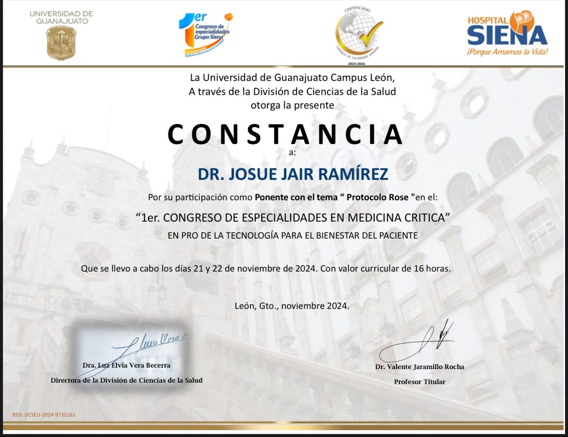 • HOSPITAL SIENA DEL MORAL - DR JAIR RAMÍREZ RANGEL • Consulta en Medicina Crítica y Terapia Intensiva •