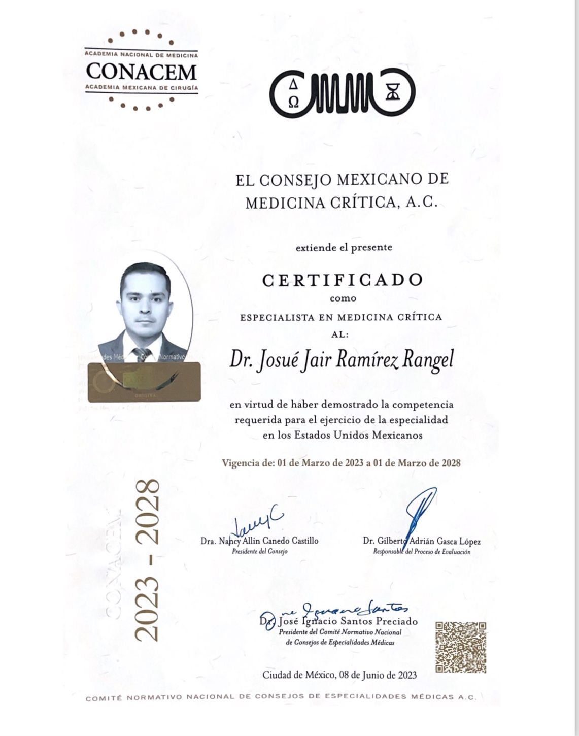 Médico especialista con formación en la atención de pacientes graves y críticos. Comprometido con el manejo integral del paciente críticamente enfermo y las situaciones medicas complejas que requieren decisiones rápidas, precisas y fundamentadas en la mejor evidencia científica