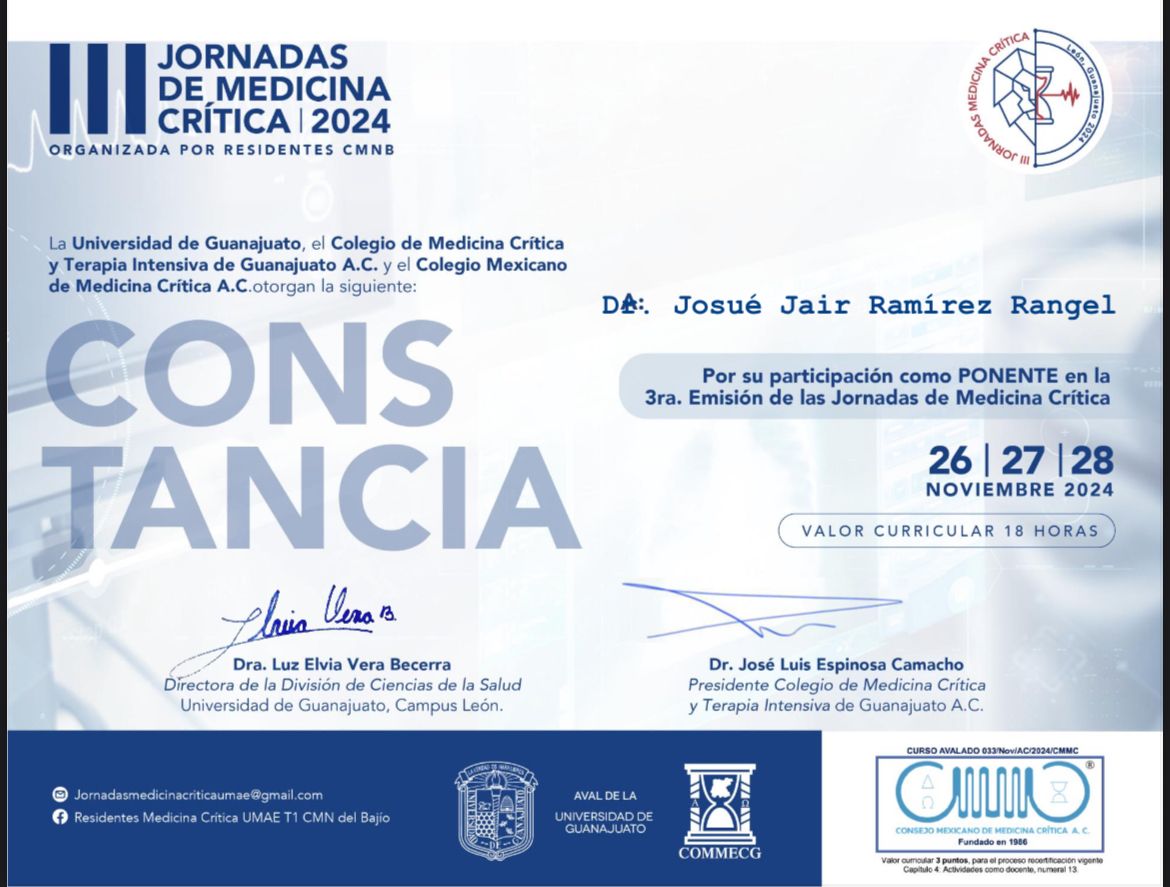 • HOSPITAL ANGELES LEÓN - DR JAIR RAMÍREZ RANGEL • Consulta en Medicina Crítica y Terapia Intensiva •
