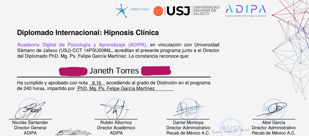 También me apoyo en herramientas como la HIPNOSIS ERIKSONIANA, TERAPIA BREVE CENTRADA EN SOLUCIONES y principios de otras corrientes psicológicas como la TERAPIA FAMILIAR SISTEMICA, TERAPIA TRANSPERSONAL (Espiritualidad) Y TERAPIA GESTAL (Mi formación universitaria), para poder tener una atención integral y a la medida de tus necesidades.