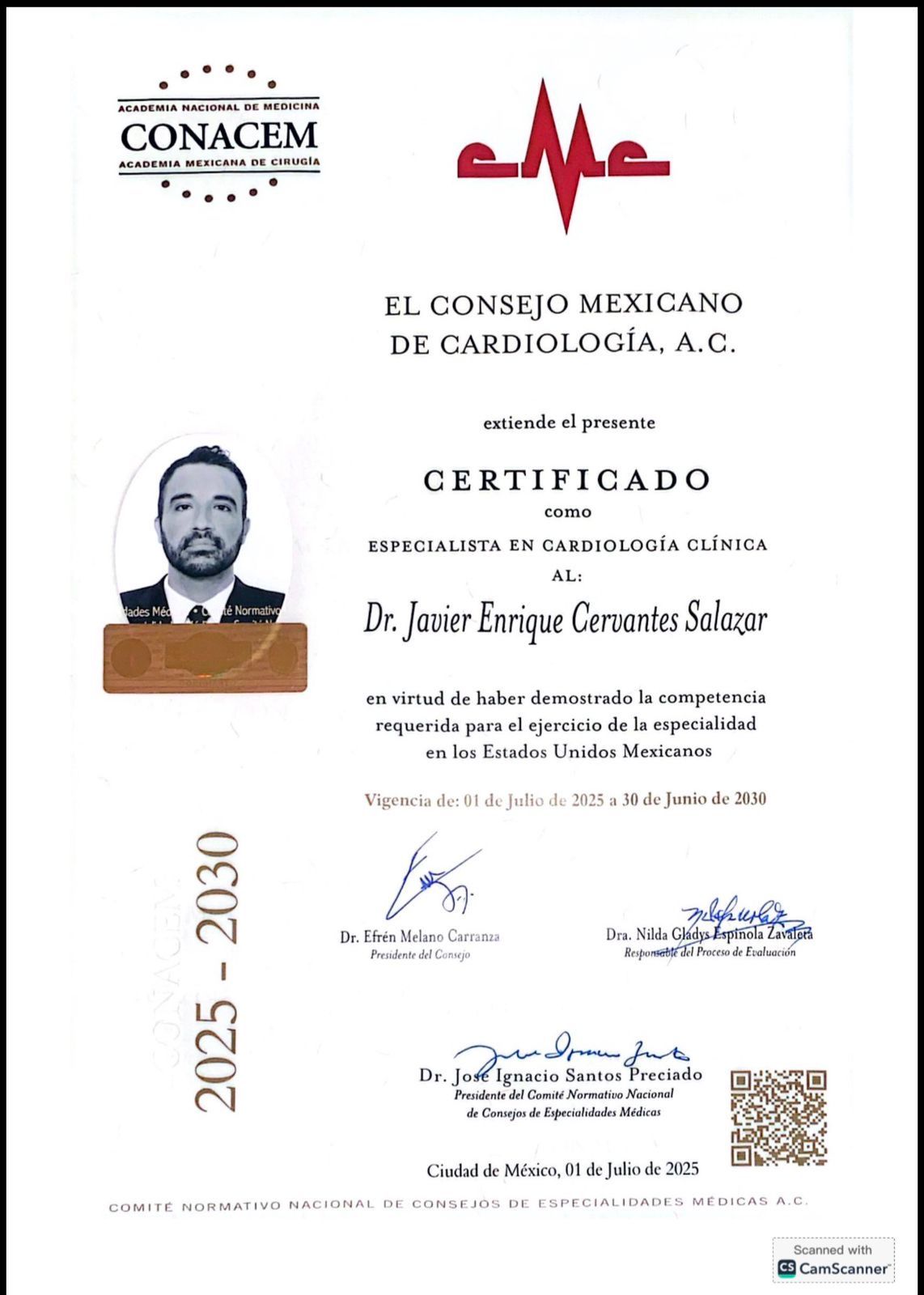 Tras culminar, tuve la oportunidad de especializarme en Cardiología en el reconocido Hospital de Especialidades de la UMAE del Centro Médico Nacional de Occidente (CMNO) en Guadalajara y a su vez obtuve la certificación por el Consejo Mexicano de Cardiología.