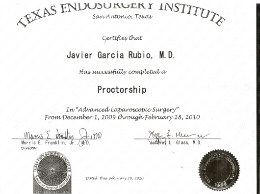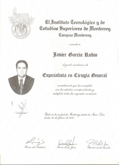 El Dr. Javier García Rubio cuenta con una sólida formación académica y una amplia especialización en cirugía general, laparoscopia y enfermedades de la mama, respaldada por instituciones de prestigio nacional e internacional.