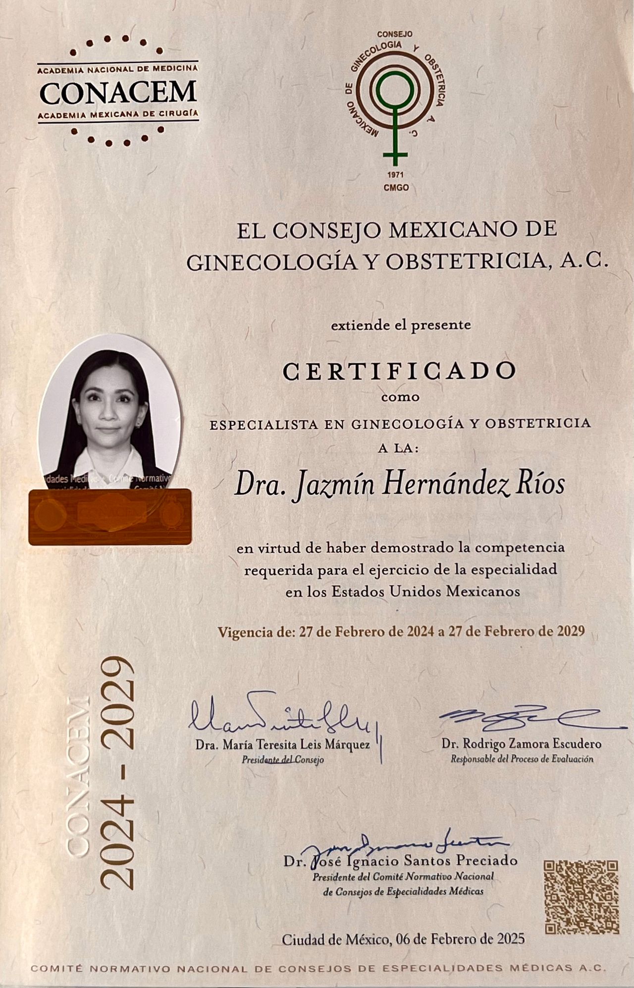 Ginecóloga y Obstetra, con subespecialidad en Urología Ginecológica.