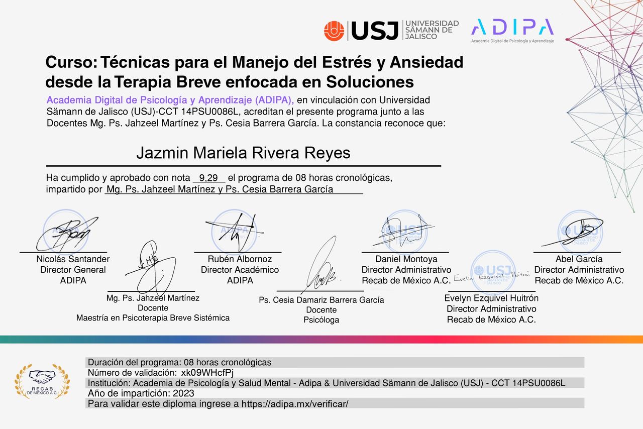 He estado con otros psicólogos y personalmente siento que la psicóloga Jazmín ha sido con la que más me he sentido cómoda y con la que más he progresado.