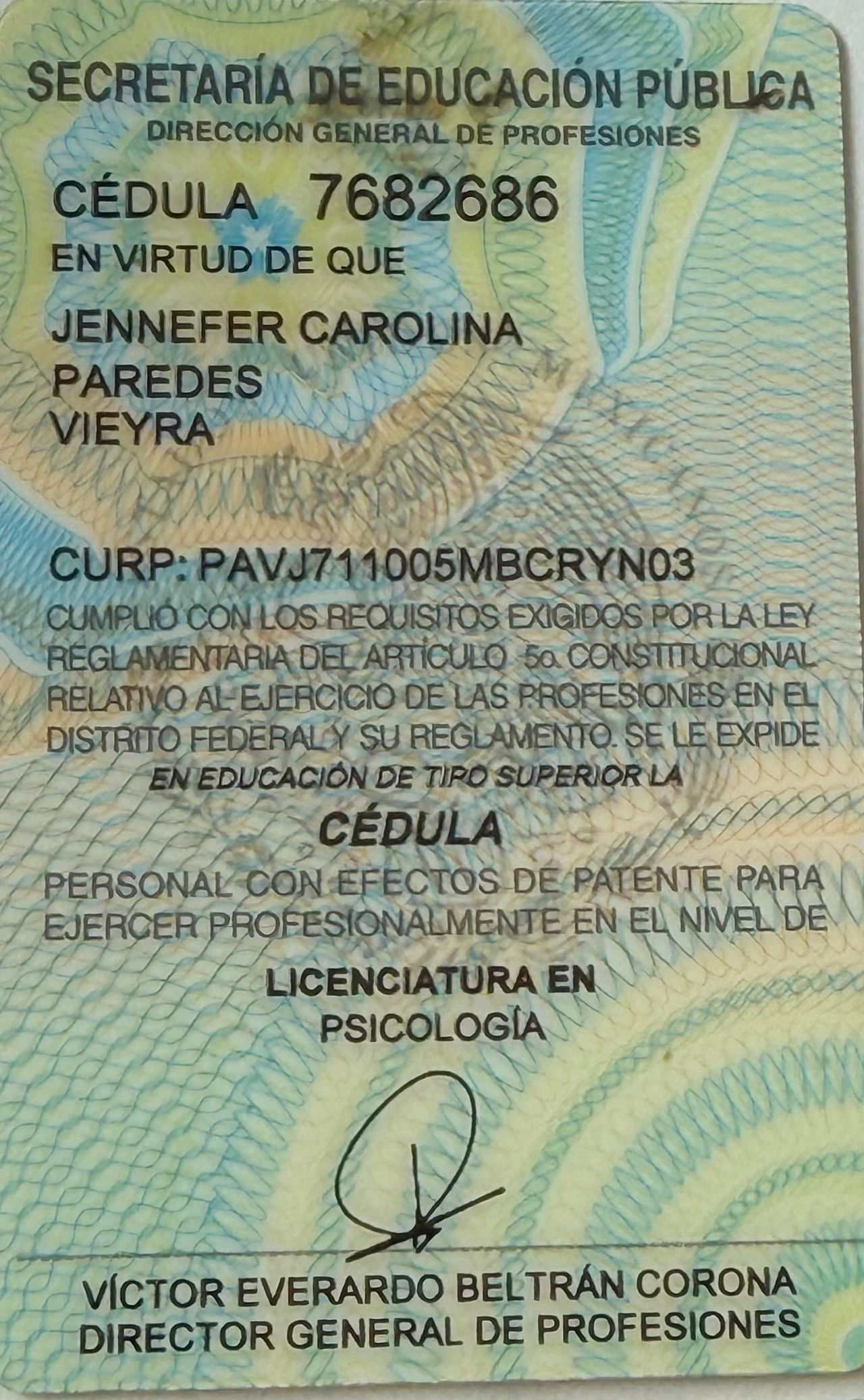 Tengo mucho tiempo ocupando ayuda psicológica y ha sido una gran bendición haber encontrado a Jennefer. Ha adaptado su práctica an mis necesidades y yo he visto muchos cambios positivos en mi vida. Antes asistir terapia era algo que a veces quería evitar por falta de fe, que yo no pueda mejorar, ahora es algo que estoy motivado hacer porque me da esperanza. Gracias Jennefer!