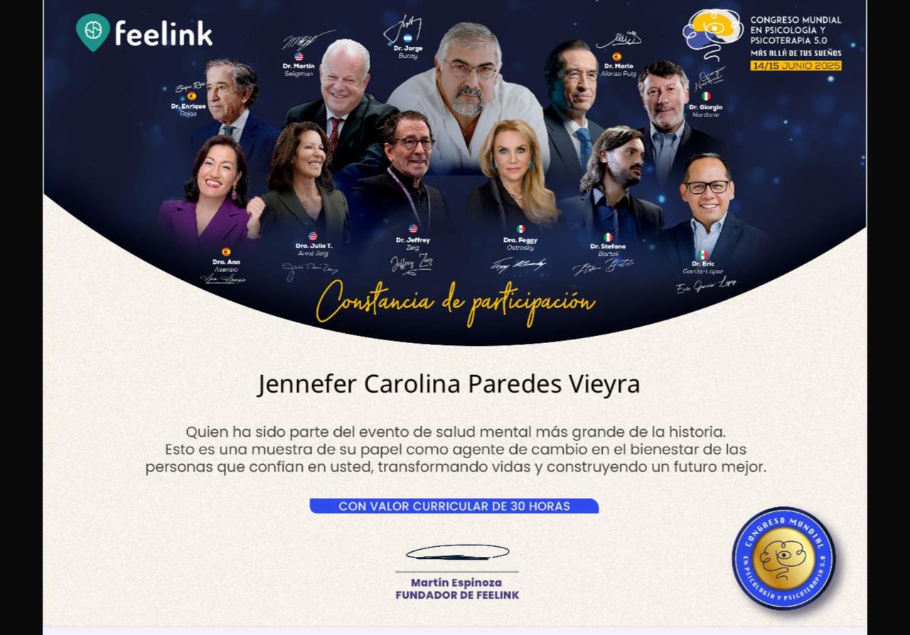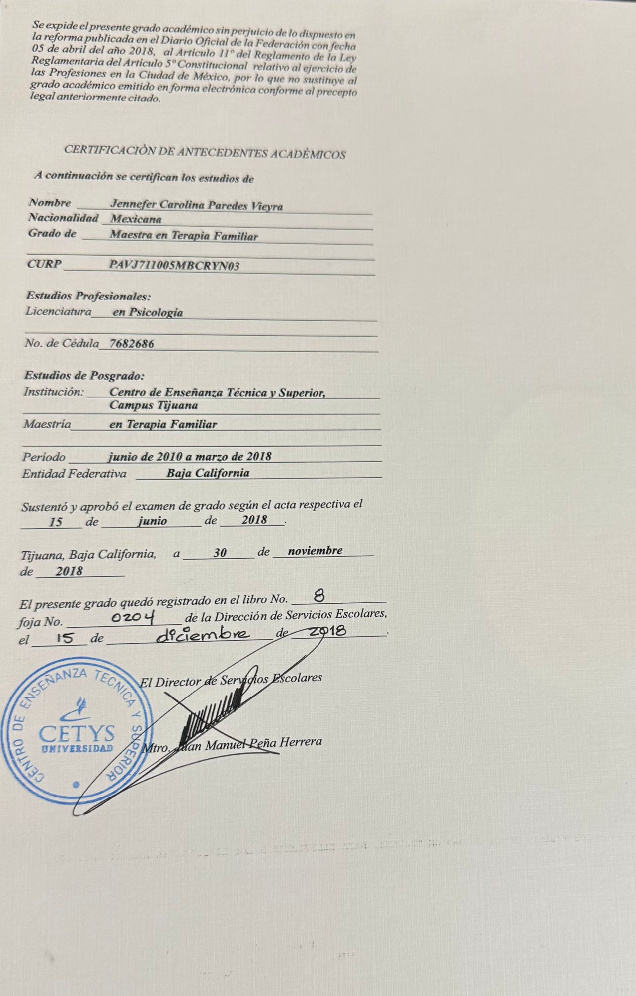 Me trasmitió mucha confianza, percibo su experiencia profesional al ser la primera entrevista ya detectó aspectos claves que debo trabajar. Muchas gracias Mtra. Jennefer