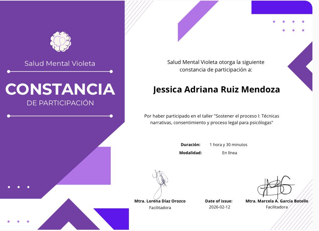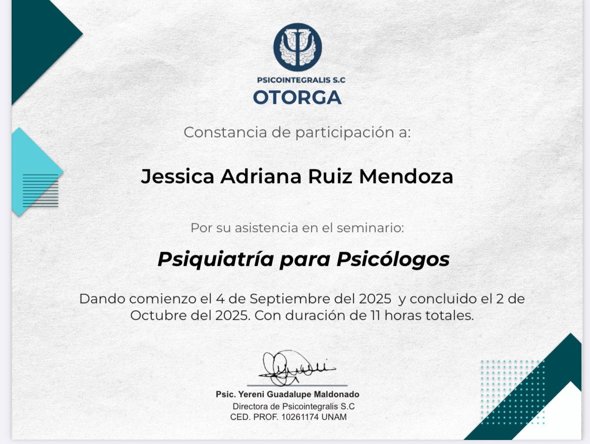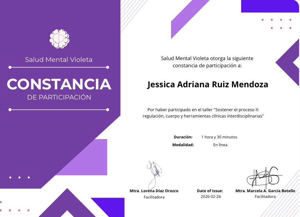 Me siento muy agradecida porque en cada sesión noto su profesionalismo y empatía. Realmente me hace sentir escuchada y comprendida. Admiro la paciencia y la forma tan clara en la que me guía. Me ayuda a reflexionar y a ver las cosas desde otra perspectiva. 100% recomendada