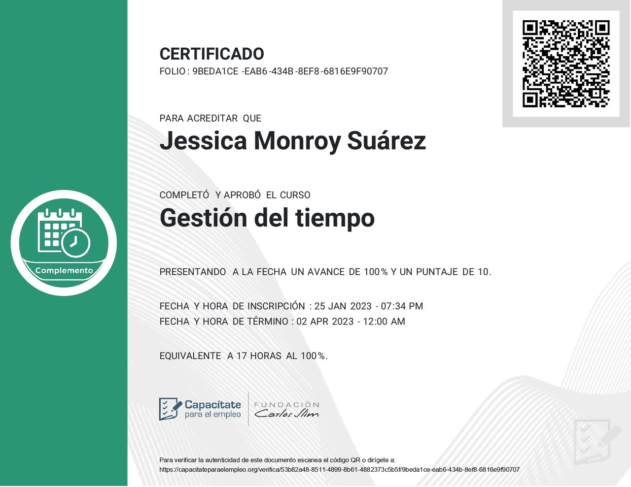 Jessica es una persona súper responsable en todos los aspectos, es y será tu mejor opción es una persona centrada con valores y mucha preparación