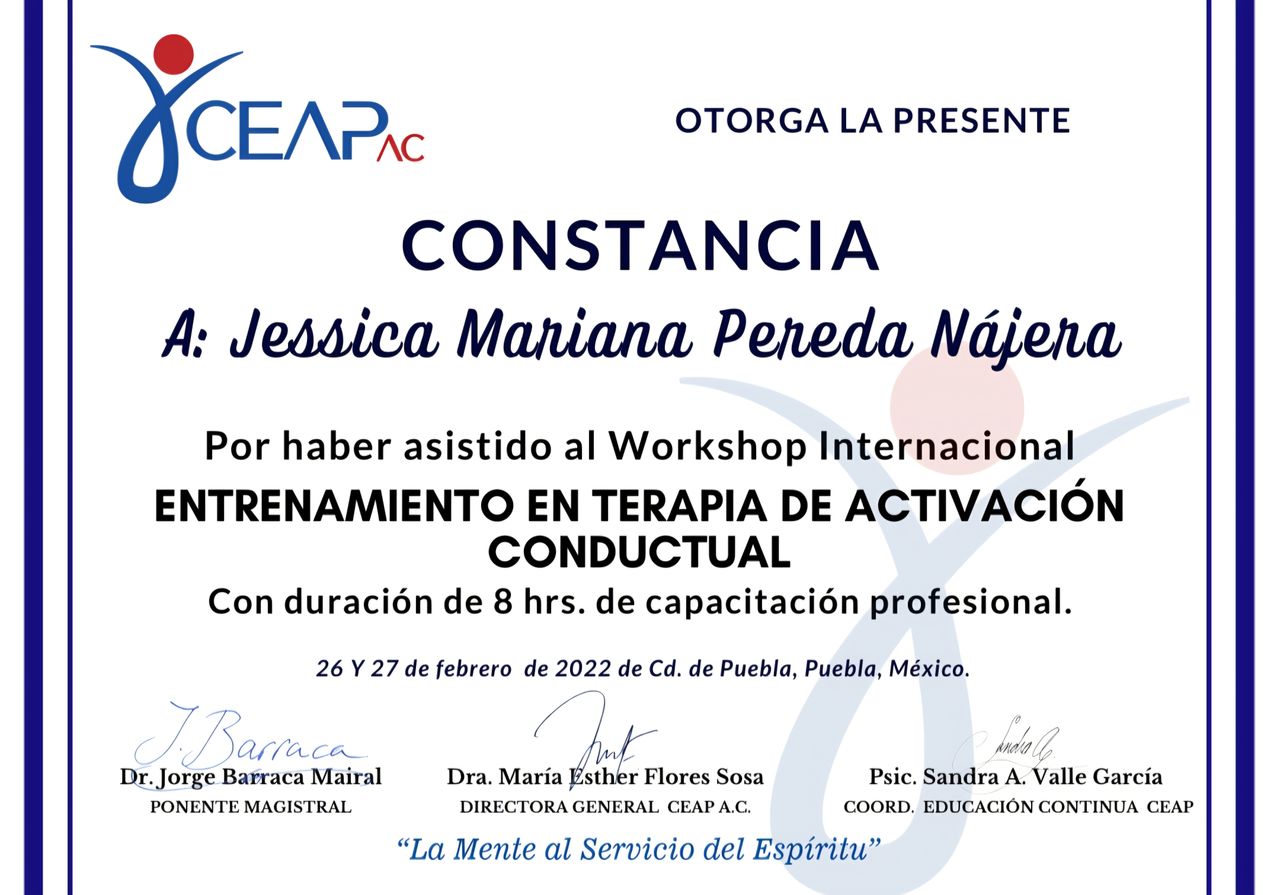• PSICOLOGA JESSICA PEREDA • Tratamiento para Ansiedad y Depresión •