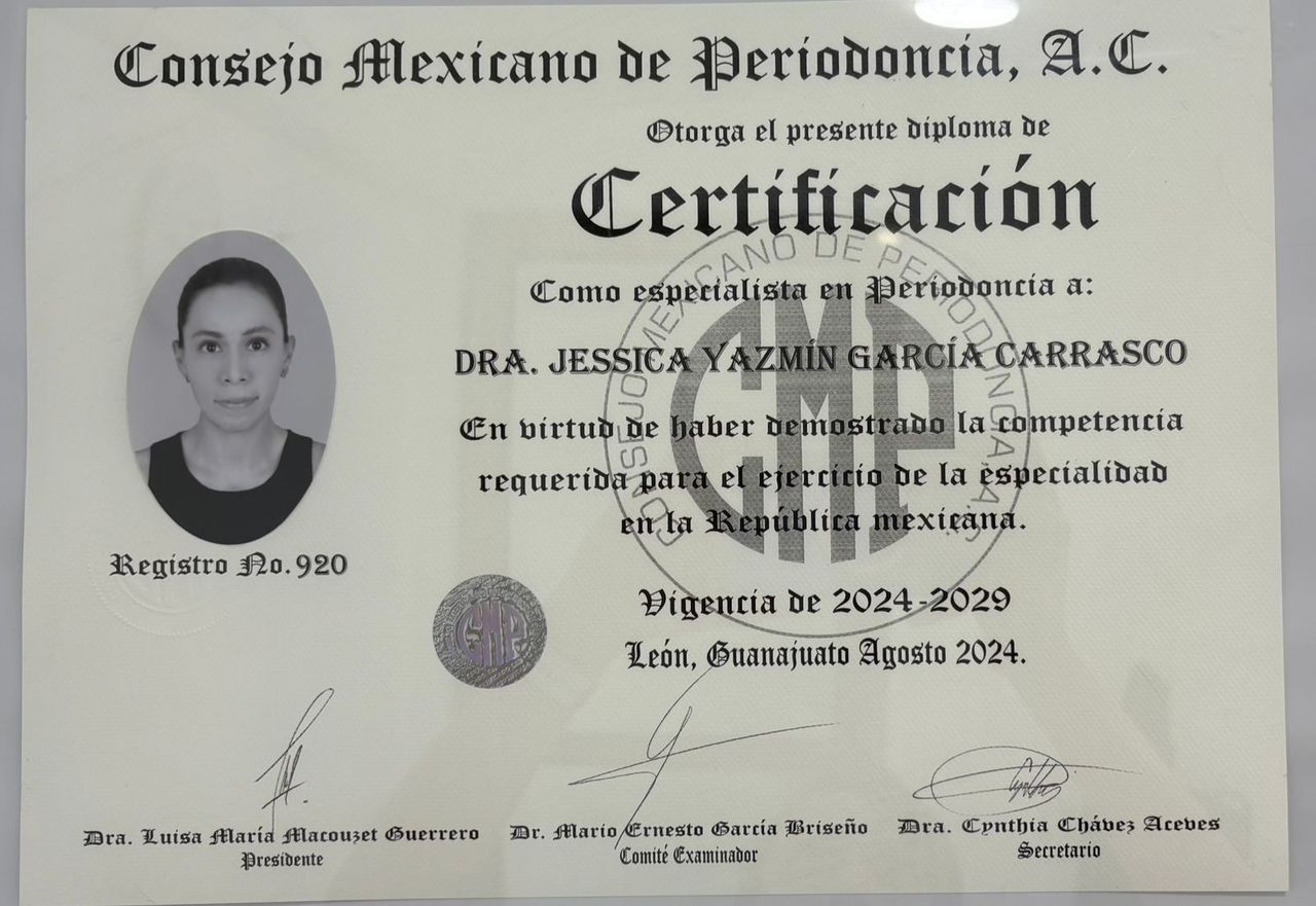 Cirujana Dentista (UNAM) con especialidad en Periodoncia e Implantología (UNAM), como especialista me enfocó en el diagnóstico, prevención, y tratamiento de enfermedades periodontales es decir aquellas enfermedades que afectan a la encía y el hueso que sostienen al diente, contribuyendo a un mundo con menos pérdida de dientes .