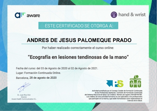 Excelente la puntualidad. La explicación detallada del problema de la mano, fue muy gráfico en la misma, dándome mucha confianza en el procedimiento para una operación de los tendones, dándome opciones, felicidades Dr. Jesús Palomeque Prado. Muy profesional