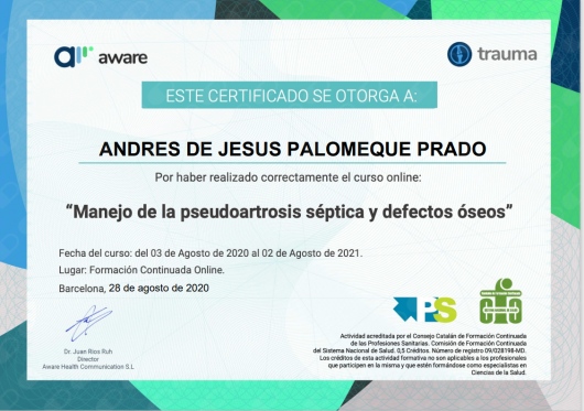 Profesor Titular del Curso de Traumatología del Hospital General Tapachula, aval académico UNACH.