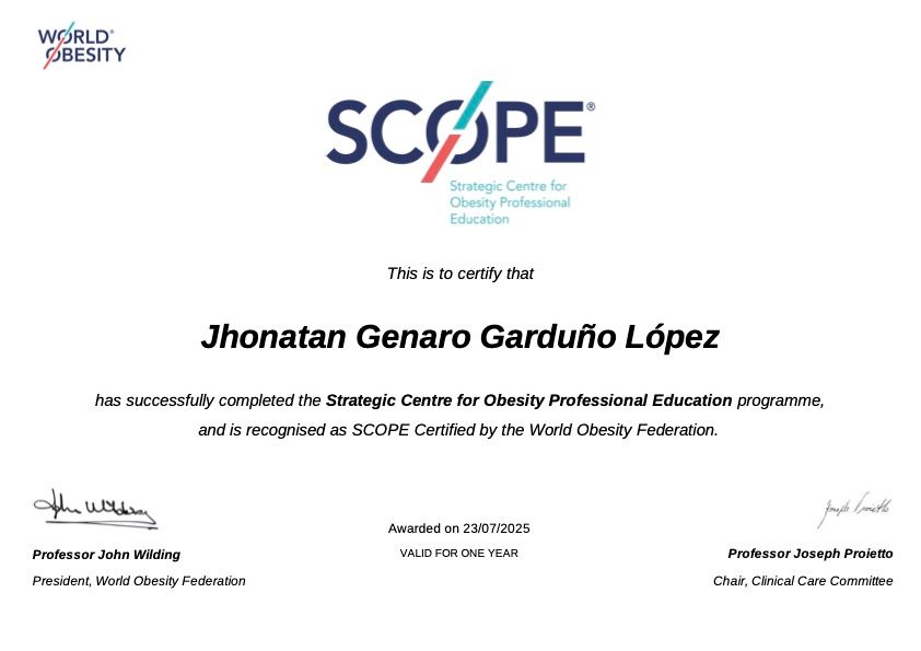 Hola, soy el Dr. Jhonatan Genaro Garduño López, Médico Cirujano y Especialista en Obesidad y sus Comorbilidades.