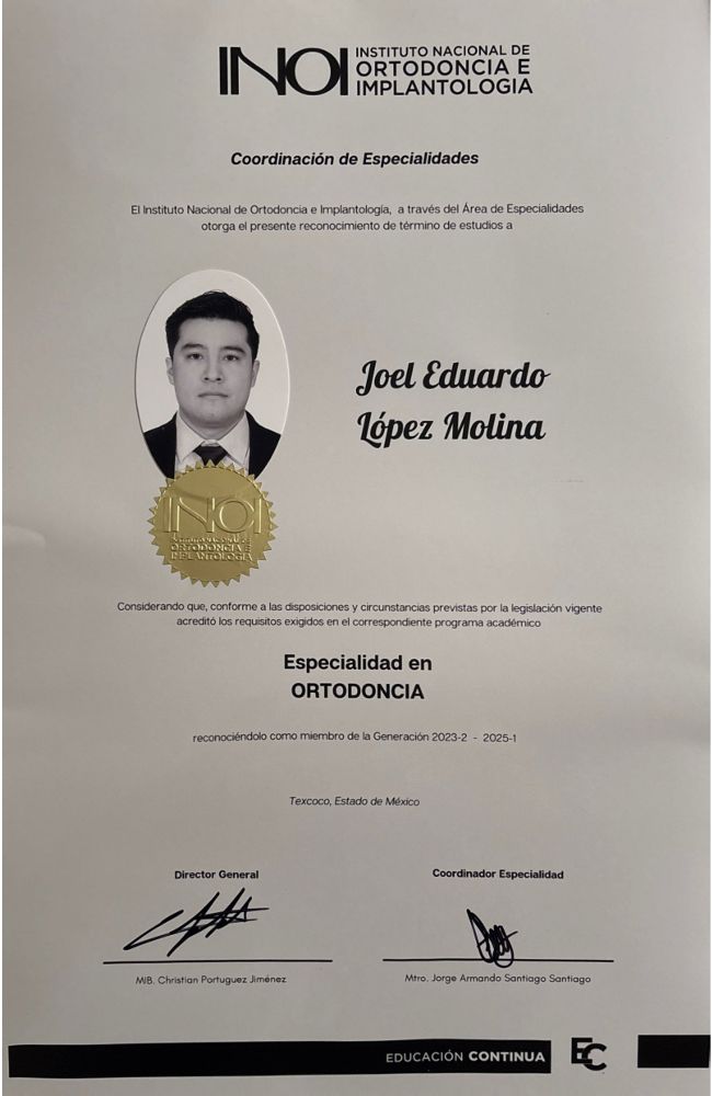 Además, tengo una especialidad en Ortodoncia por el Instituto Nacional de Ortodoncia e Implantología.