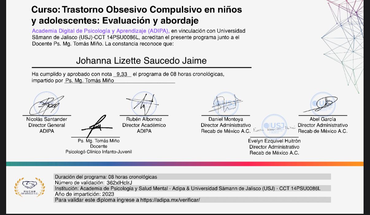 Agradezco mucho su dedicación a mi proceso terapeútico, empatía y atención en todo momento.
