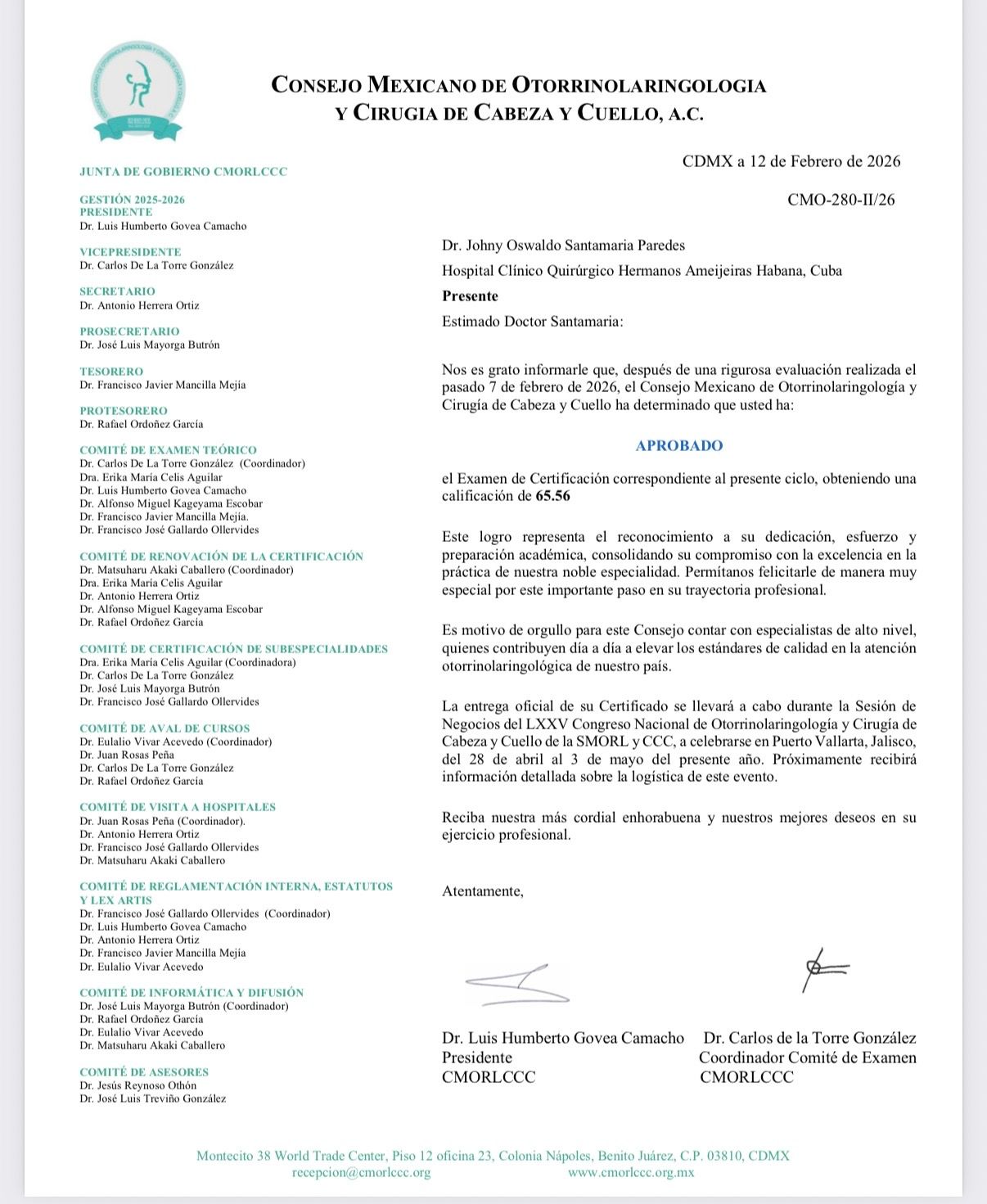 Especialista en enfermedades de oídos nariz y garganta en Ecuador y Cuba Alta especialidad en oído por 4 años en Ecuador.