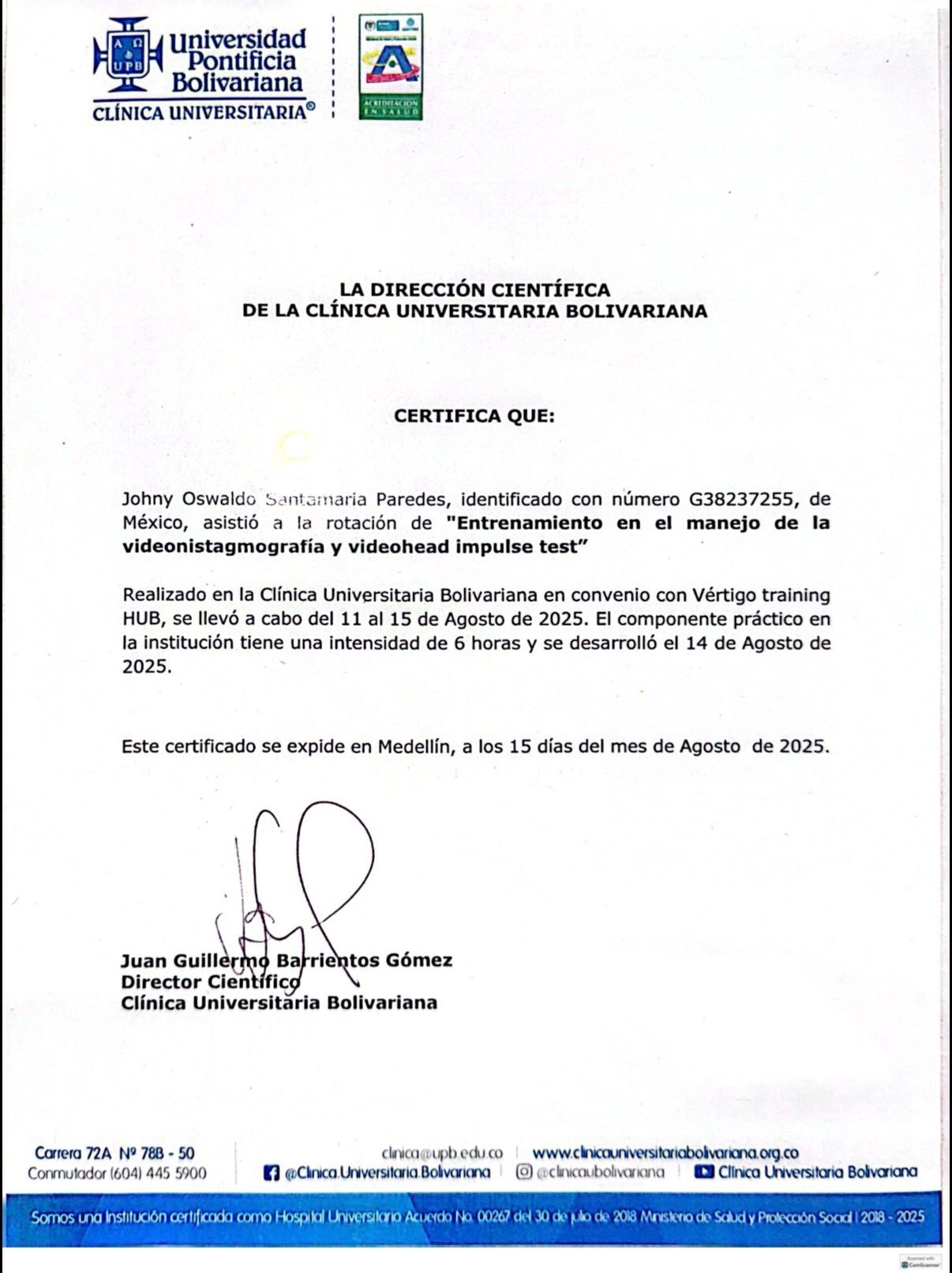 Cursos de actualizacion en VERTIGO en la ciudad de México, Guadalajara, Medellín-Colombia, Quito-Ecuador; 2023, 2024, 2025.