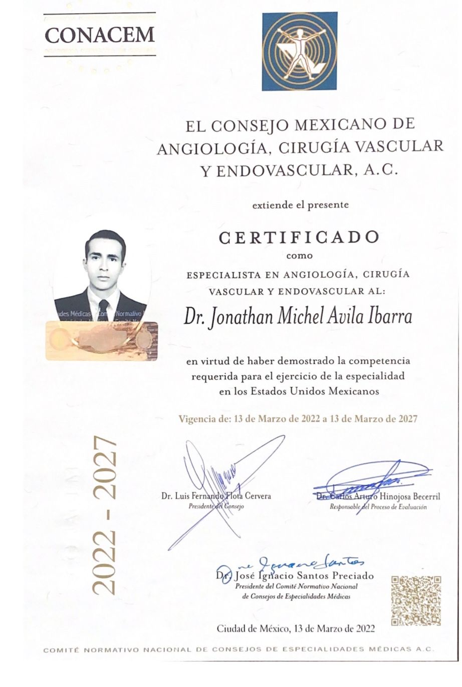 Soy médico cirujano egresado de la Universidad Nacional Autónoma de México, especializado en Angiología, Cirugía Vascular y Endovascular, con adiestramiento en cirugía torácica y angiología pediátrica, formado en centro médico nacional de occidente. Experiencia en el tratamiento de enfermedades vasculares mediante cateterismo, ofreciendo el tratamiento más actualizado y que mejor se adapte a tu problema. Mi objetivo es cuidar de tu sistema circulatorio, evitando complicaciones a tiempo, siempre con el trato más profesional y humano. Deja tu circulación en manos de un experto