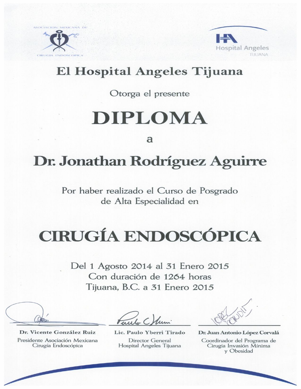 Hola, soy Jonathan Rodríguez Aguirre soy Cirujano General con especialización en enfermedades del tubo digestivo y Cirugía Bariátrica, tengo mas de 14 años de experiencia en cirugía laparoscópica o de mínima invasión.