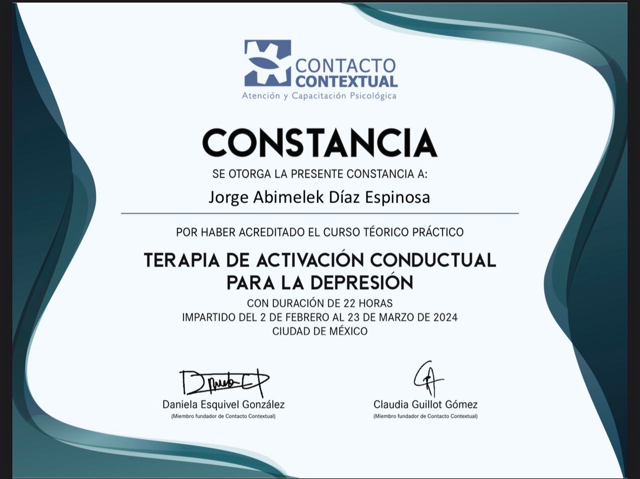 Psicólogo especializado en Terapia Breve de Activación Conductual y Terapia Dialéctico Conductual.