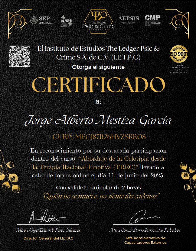 Me presento, soy Jorge Mestiza, Psicólogo y Psicoterapeuta con 10 años de experiencia en el acompañamiento individual de adolescentes y adultos, así como en el trabajo con parejas. Mi enfoque es la Terapia Cognitivo Conductual, una metodología respaldada por evidencia científica, orientada a generar cambios concretos y duraderos en la vida emocional y conductual de las personas.