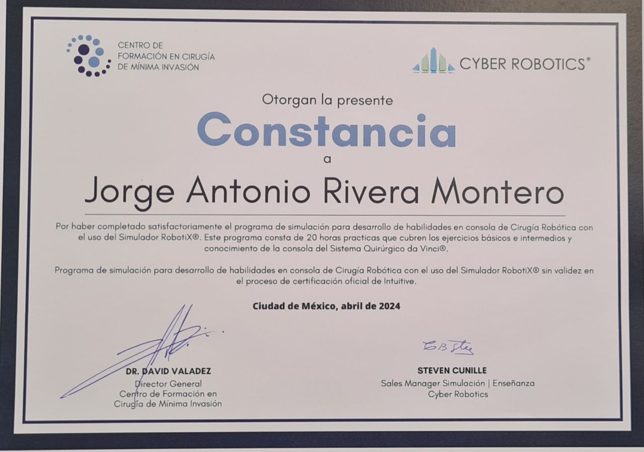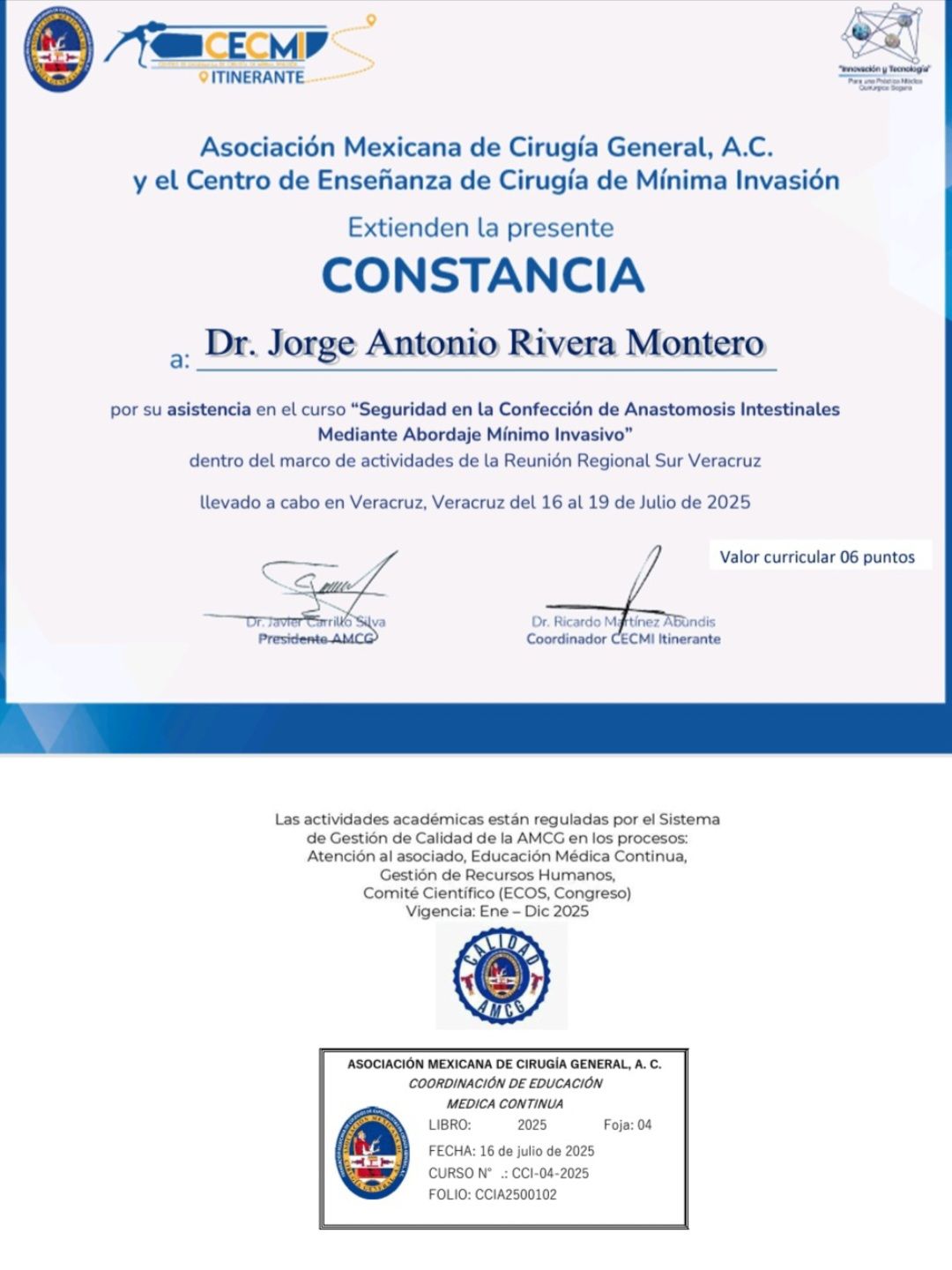 Es un excelente cirujano me operó de la vesícula mi recuperación muy bien todo antes de la operación me explico a detalle el porqué debía operarme con tranquilidad y animo pues yo estuve 8 meses dudando su seguimiento explicación científica ayudó con los estudios de ultrasonidos y análisis de sangre llevo un seguimiento acertado para poderme decidir a la operación parosvopica solo 3 oricifios con pocos puntos y en un tiempo de 45 min ya estaba operada tengo 9 días de la cirugía ayer me quito los puntos muy bien todo mínimo dolor a la fecha y sin antibiótico ya ni medicina para dolor pues mínimo sigo con los cuidados nutrición blanda etc y en un. Mes me checa de nuevo muy agradecida es un excelente médico y ser humano bendiones Dr Jorge Dios ve los corazones de todos y usted es un maravilloso ser humano dedicado a su profesión a sus pacientes a su familia y amistades gracias a Dios por ello