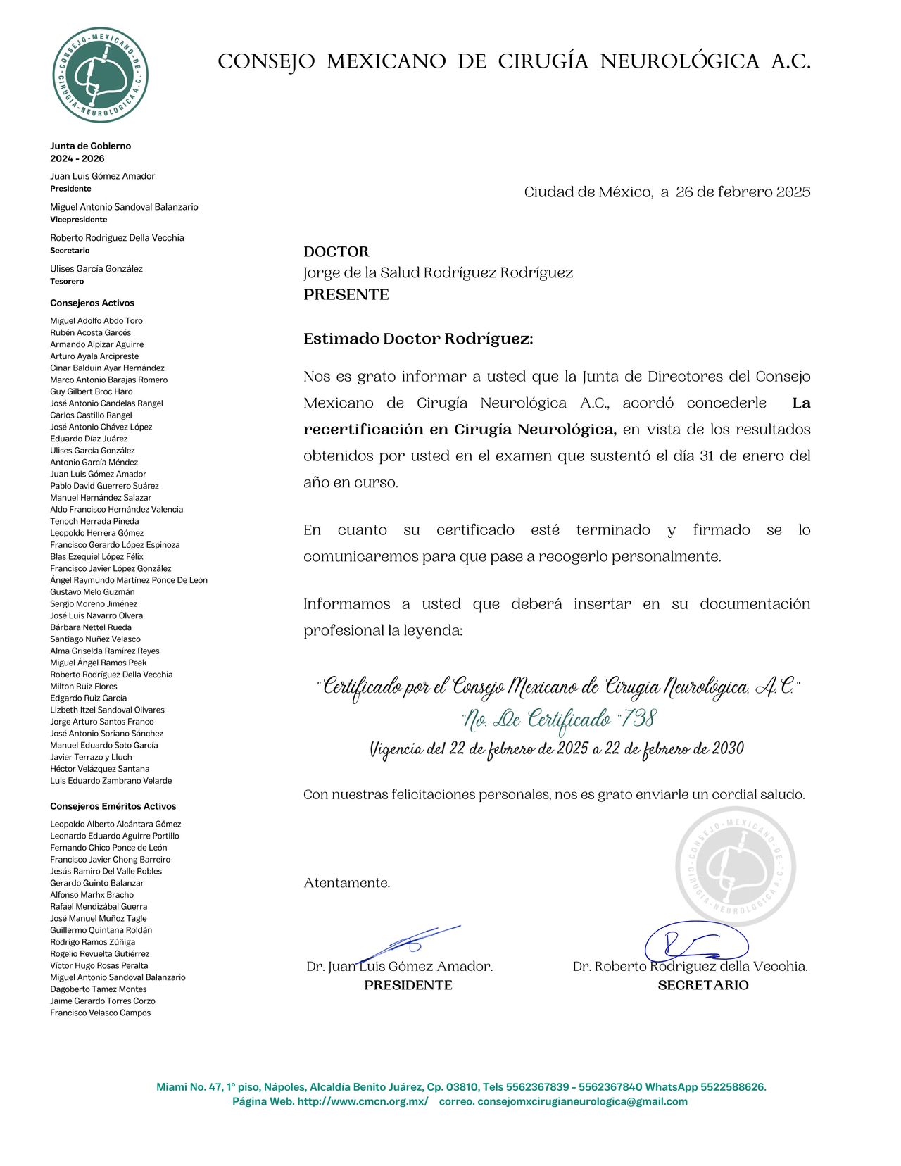 Soy médico neurocirujano con especialidad en cirugía de base de cráneo, enfocado en el tratamiento de enfermedades neurológicas complejas, tumores cerebrales y lesiones del sistema nervioso central.